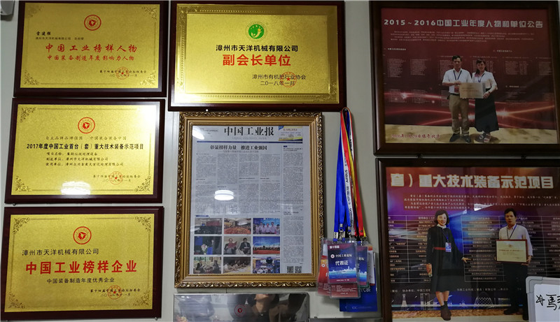 漳州市天洋机械有限公司成立于2003年,其自主研发制造的“天洋”牌病死畜禽无害化处理设备可以将废弃动物尸体成功转化为高档有机肥料,实现批量环保处理,达到“源头减废、消除病原菌”的效果,从源头上杜绝病死畜禽回流餐桌。该设备品通过福建省权威部门的检测鉴定,并获得福建省农业机械推广证书,被评为“中国工业首台(套)重大技术装备示范项目”。天洋机械获得中国工业示范单位、中国工业榜样企业、中国装备制造年度优秀企业等各项全国性荣誉。