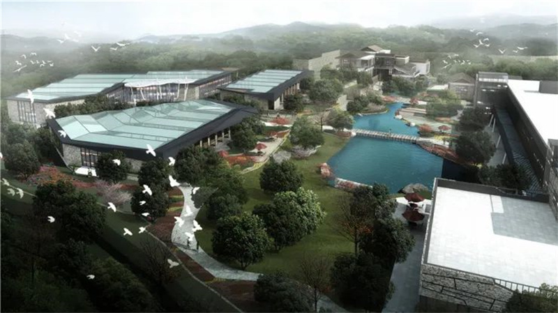 我们在广西当地城郊的河边山坡上,充分利用地形,将8米多的高差变成优势,形成独特的立面效果,空间在迂回婉转中变得份外有趣,充分融入本土文化、民族木质结构建筑、当地特色材料,用现代技术还原古朴的自然风韵,让仙草堂灵芝创意产业园成为融安的一张有着浓郁生态气息的独特的名片。